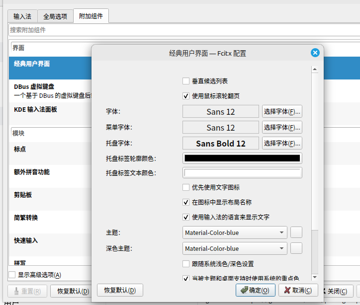 sudo apt install librime1 librime-data fcitx5-rime fcitx5-rime-color使用Fcitx5